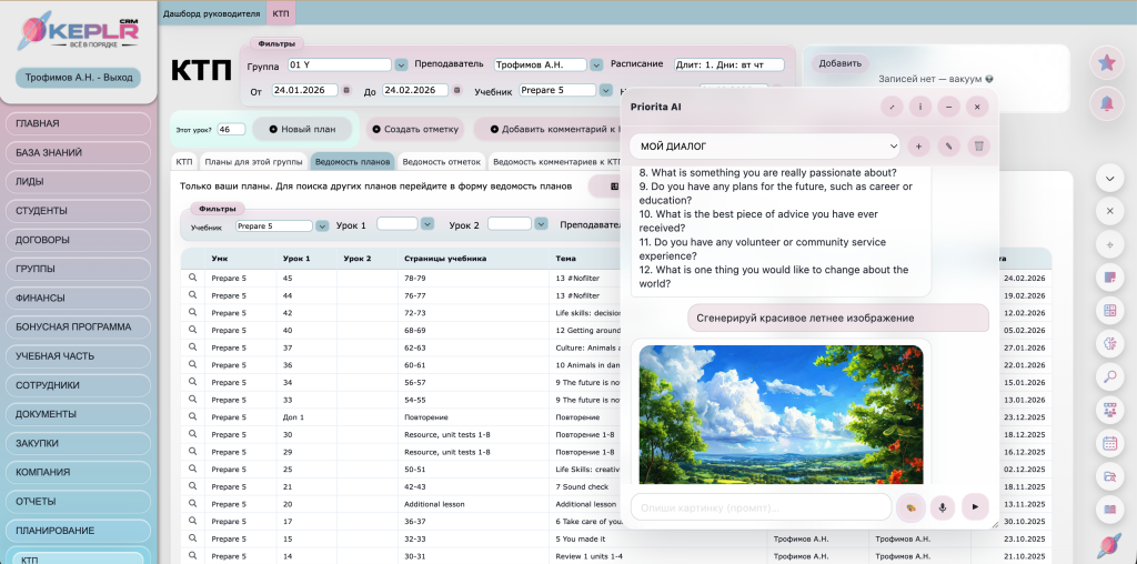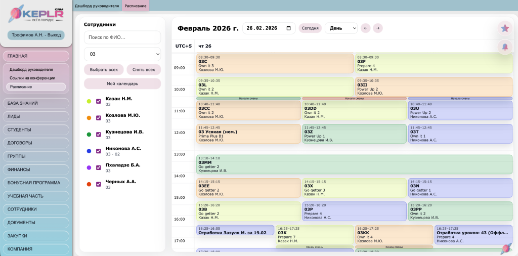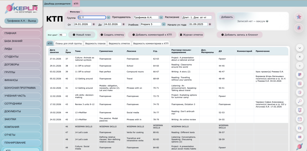 которые составляют ежемесячные отчеты по преподавателям и их работе в CRM: отметки и ведение КТП, планы уроков, комментарии родителям.
