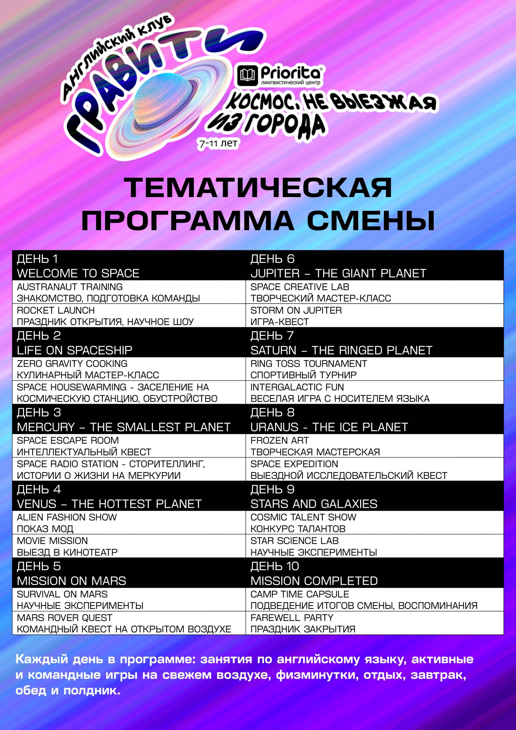 Программа языкового лагеря ГРАВИТИ