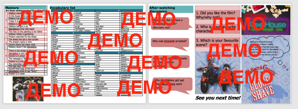 - Воркшит для учеников с лексикой и заданиями по фильму в формате .docx